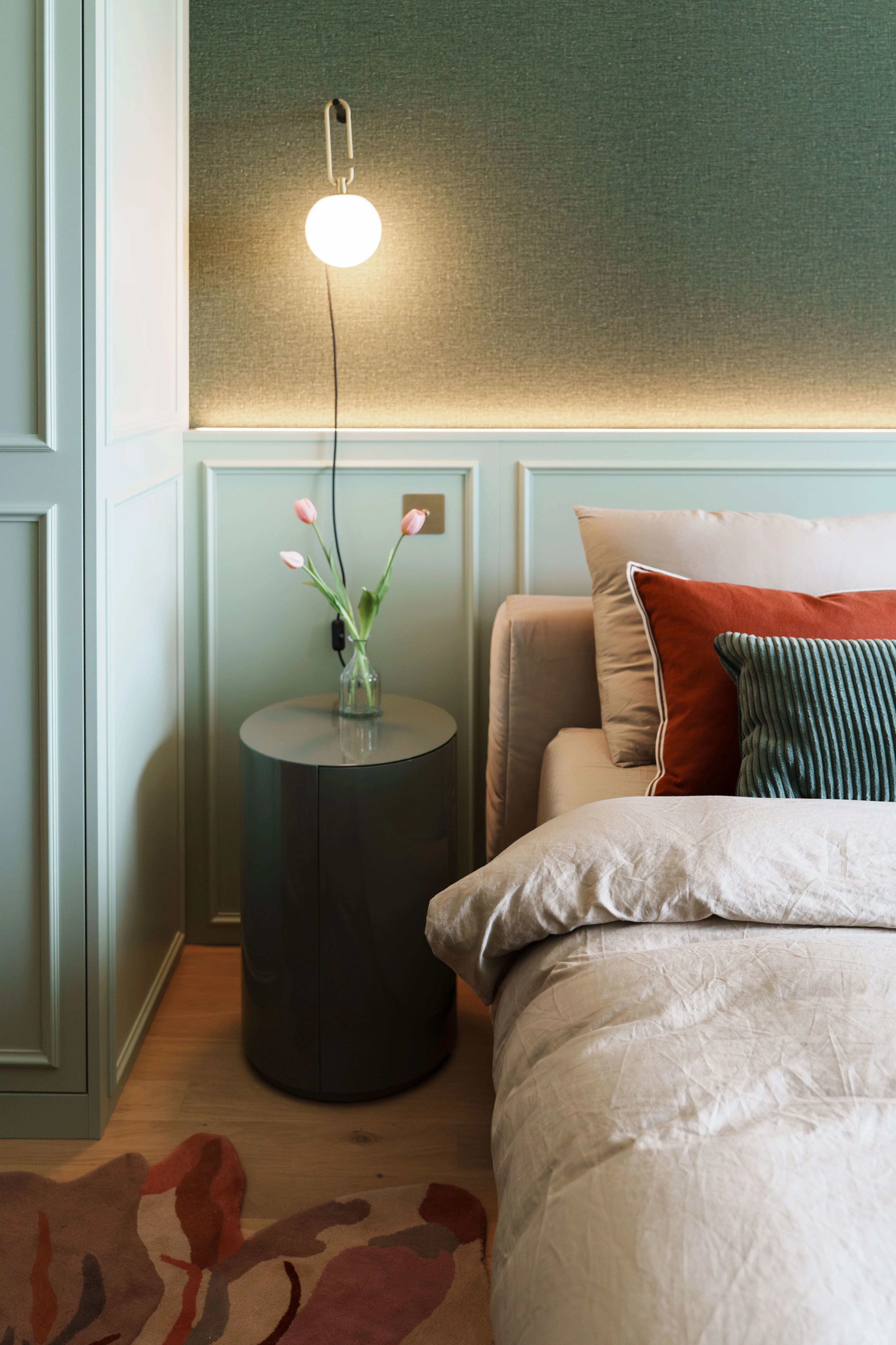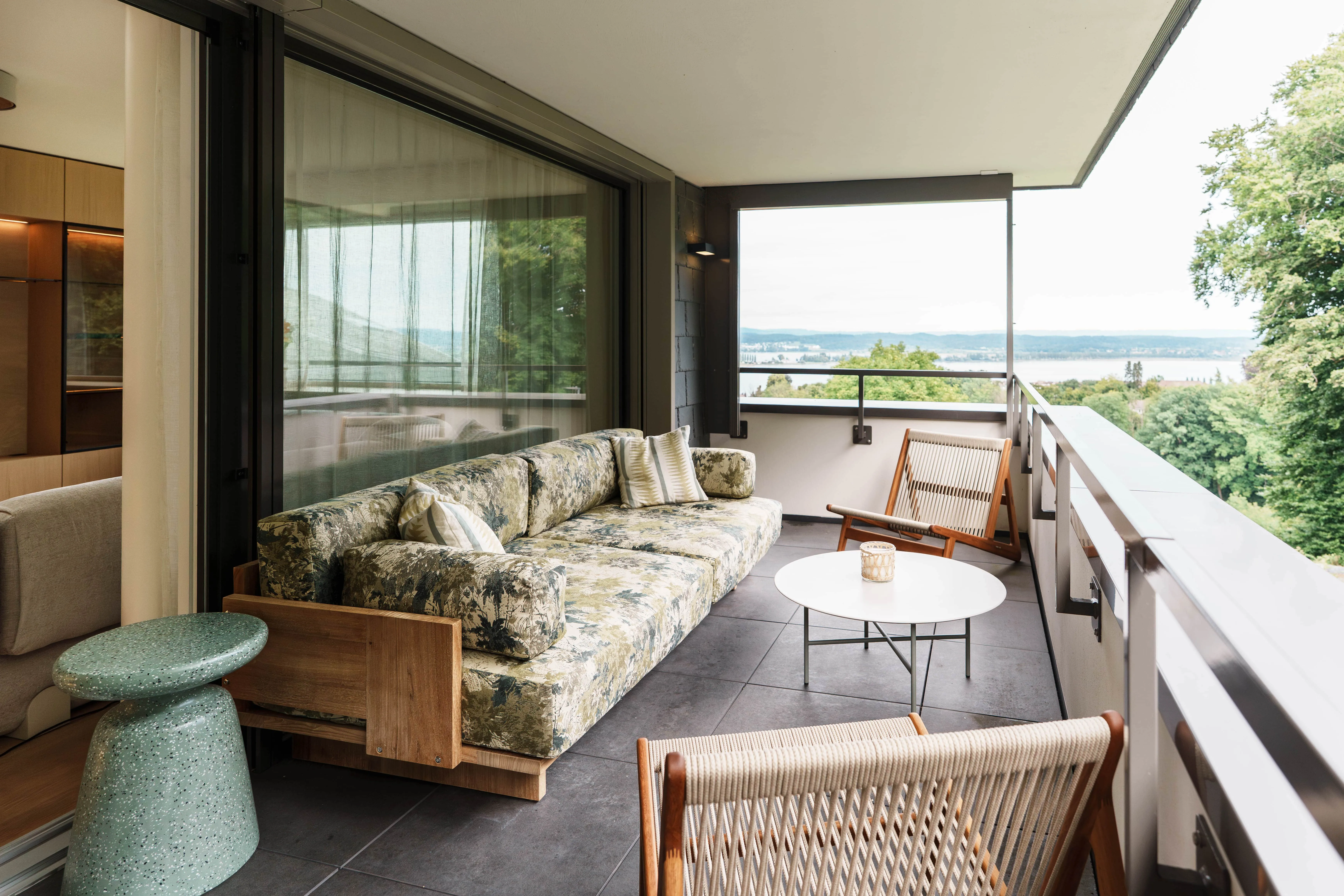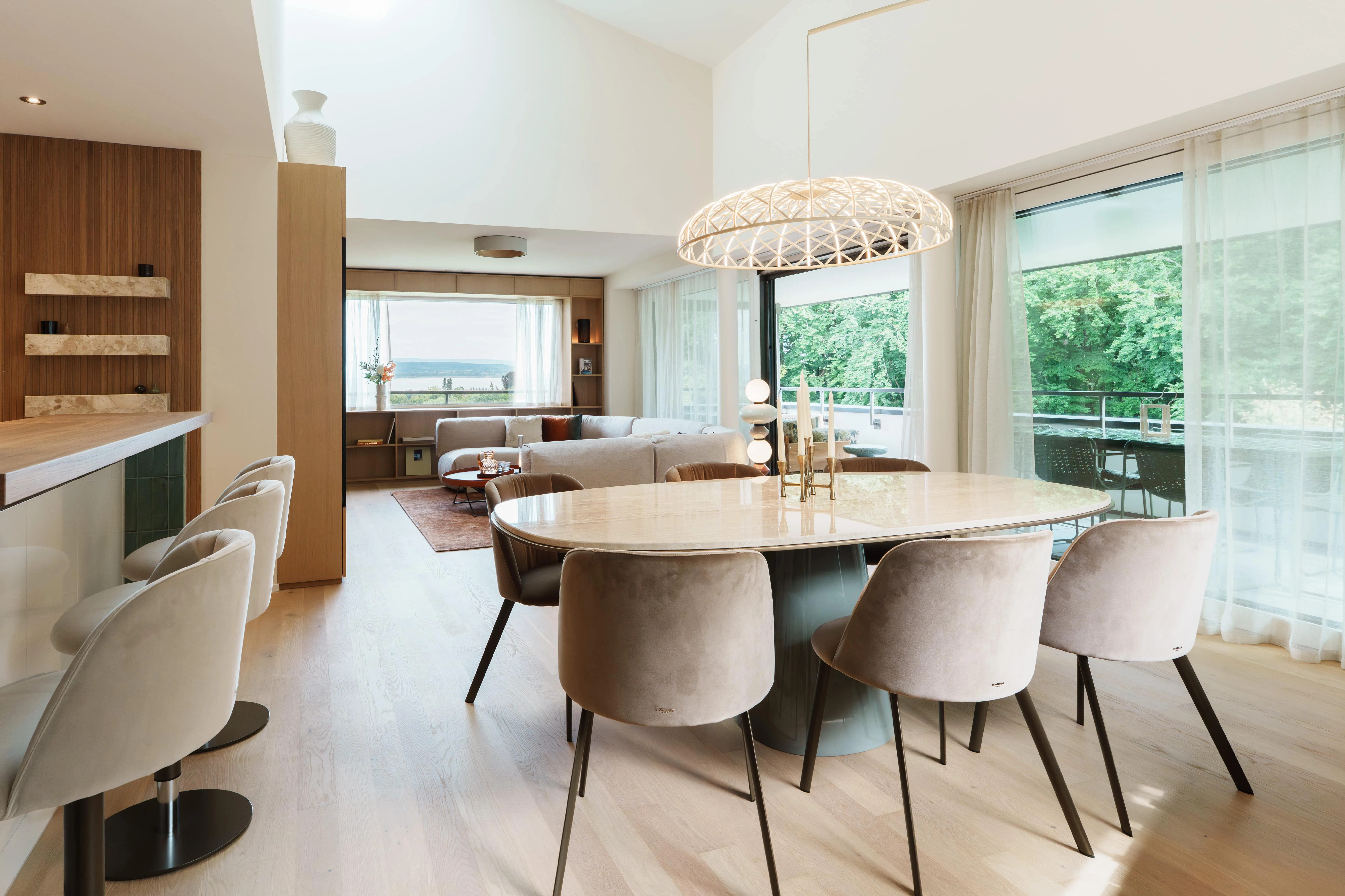 This Swiss apartment is a warm, nature-inspired sanctuary, designed to balance calm, comfort, and timeless elegance. Earthy tones, organic shapes, and natural materials flow throughout, from sage-green handmade tiles and sculptural lighting to custom cabinetry framing lake views. Layered textures such as linen, wood, terracotta, and soft fabrics create a cozy, inviting atmosphere. Every detail reflects a connection to the surrounding landscape, blending modern comfort with a sense of place. This project embodies our approach to Swiss interior design: crafting personal, warm, harmonious homes that celebrate nature, light, and thoughtful craftsmanship.